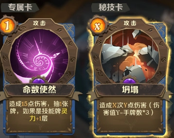 专属卡牌“命数使然”可提供一次抽牌机会,若抽到技能牌,还能够叠加灵力。而秘技卡“坍塌”属于核心输出卡,借助叠加灵力与增加能量,能让此单卡实现极高的多段伤害。