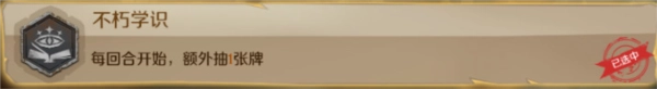 初始天赋“不朽学识”具备一项特性,即每回合能够额外抽取一张卡牌,这一特性切实有效地保障了卡组的滤抽能力。