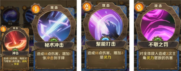 攻击卡建议优先选取带有“灵力”字段的卡牌,搭配巫师的机制,能够造成较为可观的伤害,推荐“秘术冲击”“聚能打击”以及“不敬之罚” 。