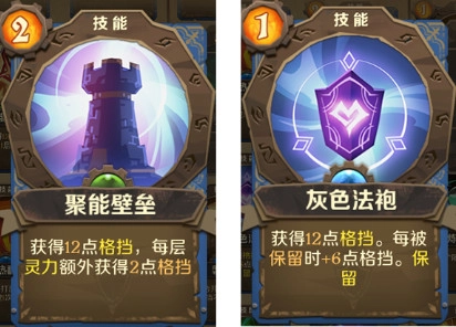 核心防御牌“圣光降临”,不仅能增加格挡,还可叠加灵力,极大地提升了叠加效率。