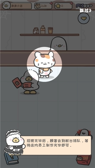 6、进入游戏后,会有员工主动招揽顾客,顾客会前往前台排队等候,直至员工制作完成相关服务或商品,整个过程都是自动进行的。