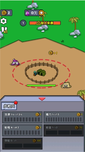 3、游戏里金币数量有限,玩家得精打细算,斟酌究竟是提升兵种的攻击力,还是增强基地的防御能力,这都要求玩家慎重做出决策。