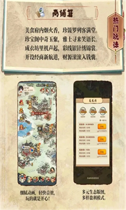 在游戏之中体验到优美的山水画,成为最厉害的掌柜吧。