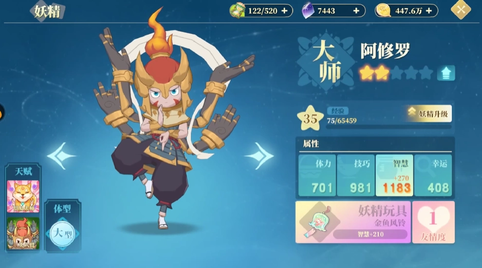 第二种方式:妖精的属性值通过星星来呈现,借助增加星星数量以提升属性。
