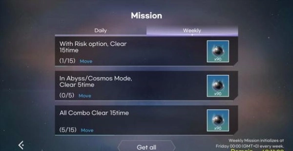 点击菱形可进行收起或展开操作,展开后再次点击任务界面,便能查看任务详细信息。若找不到相应位置,可点击蓝色的“move”直接跳转。每日任务似乎能游玩尚未购买的曲目,任务完成后曲目会再次被锁定。
