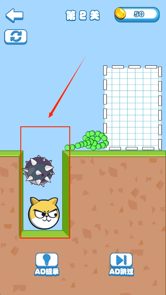 2、我们仅能在规定的区域内进行作画。而如何通过画线,让左边的武器砸到右边的狗狗,这便是我们需要解决的问题。