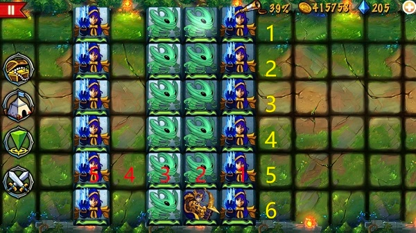 小技巧1:在电法流闯关时,要是发现距离你两格远的地方有一排墙,墙后面还躲着电系法师,此时把你第一排法师的位置按1、6、2、5、3、4这样交换一下,接着再前进。这样做的话,就不会因攻击而打掉墙,从而放出法师将你“团灭”。交换位置后继续前进,就可以打死法师了。