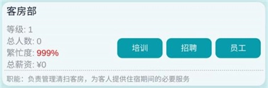 康乐部:为酒店提供健身房服务,涵盖器械健身、球类健身项目,同时还设有游泳、桑拿、按摩等服务。每个部门在游戏中都有独特作用,会触发各类不同事件。