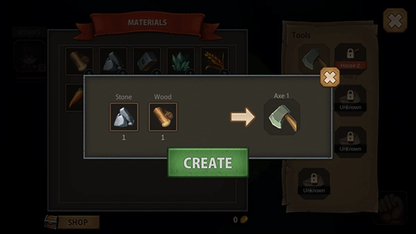 渐渐地,我们将带来大量的物品和材料,组合成车间,以获得新的工具,材料衍生物(如面料,玻璃瓶或伪造金属),餐具,甚至神奇药水。我们的家从一个帐篷转化为一个大房子,处置锻造,厨房和实验室;