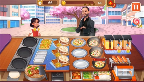 2、注意要点就是,炒饭要一直续上,肉夹馍三个备用就好,而且全部都是有小菜的,就不用分心,饮料和烤肠,顺手多点几下,就完美解决了,唯一注意的就是炒饭,而且这是正常关卡,上菜是有顺序的,完全可以多打几遍背背图。