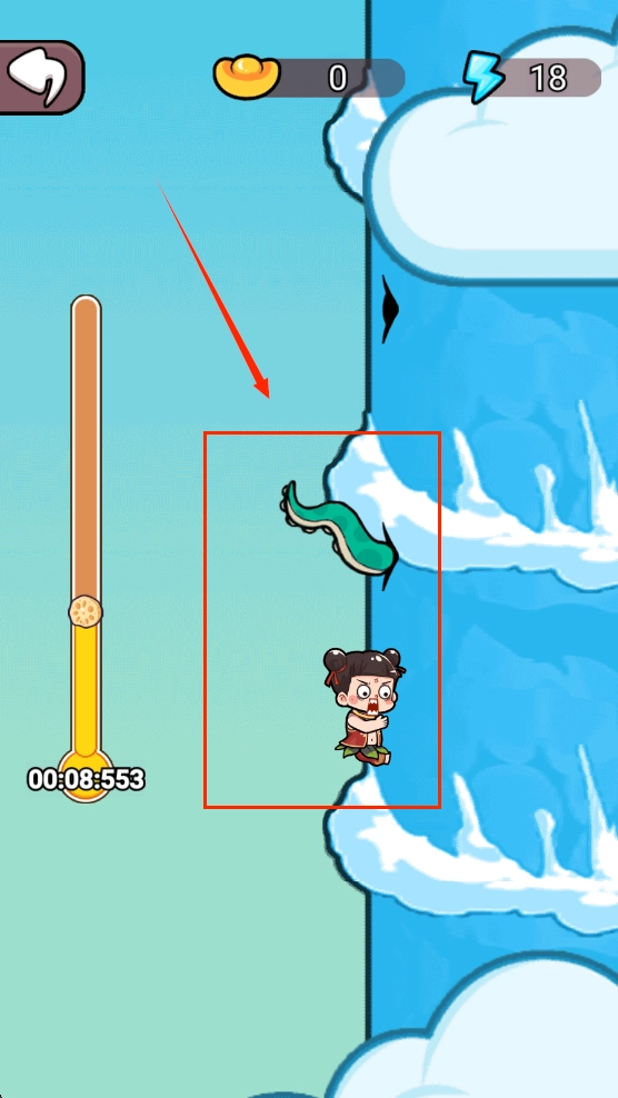 3、轻触屏幕,游戏角色便会向上攀爬。点击的频率越高,角色攀爬的速度就越快。