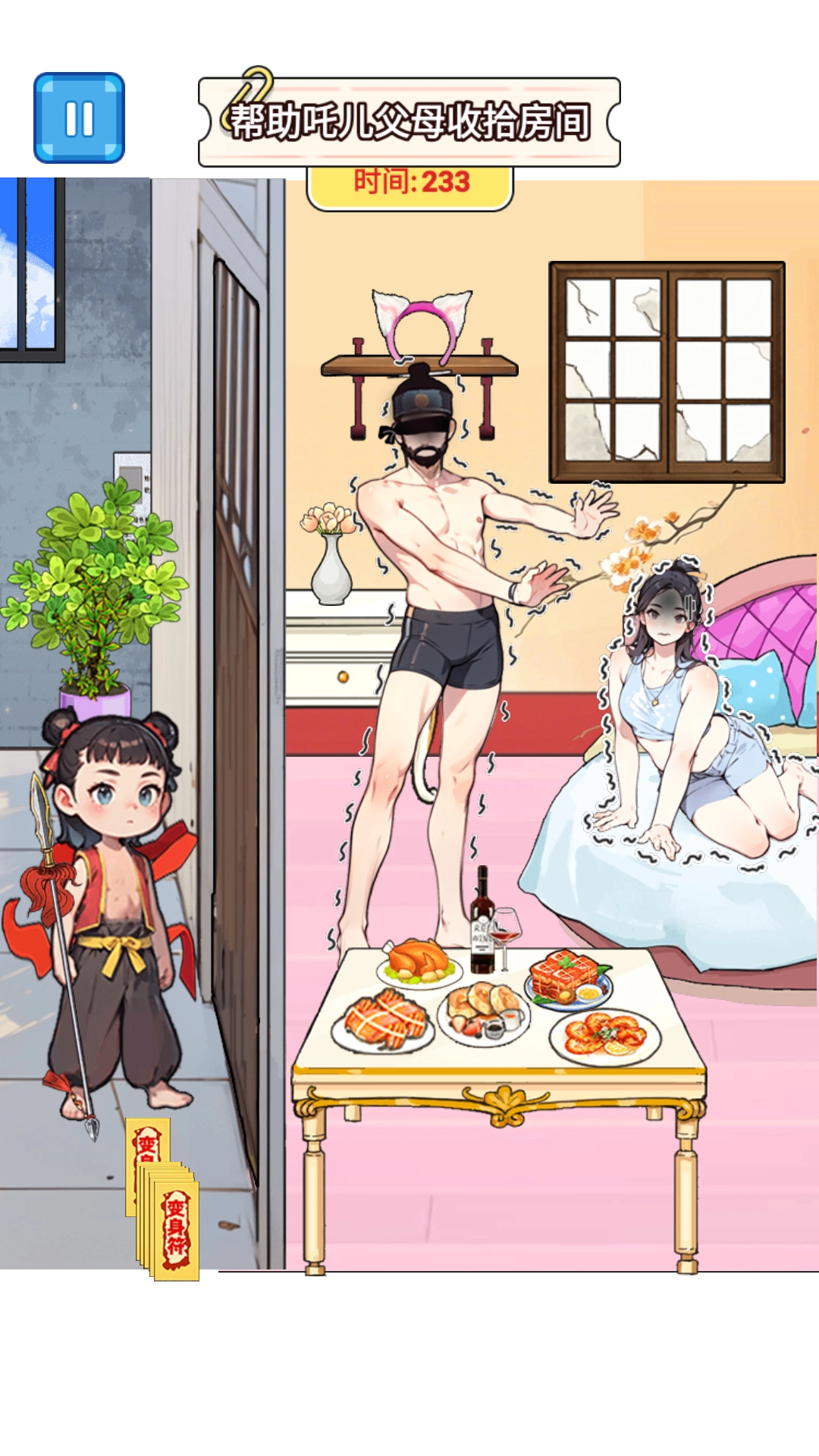 3、游戏内设有丰富多样的关卡,涵盖整理房间、助力哪吒渡过雷劫、协助人物实现变美等。每个关卡不仅场景各异,任务也不尽相同。