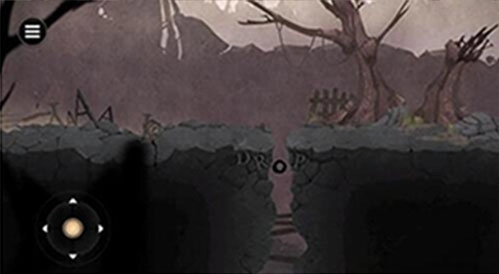3、有个小洞口,这洞口这么小,人肯定走不过去。洞口旁边还有三个字母“drp”,单独这三个字母组不成单词。不过要是加上洞口这个像“o”的形状,就成了“drop”,意思是落下。紧接着,我们就真的掉下去了。