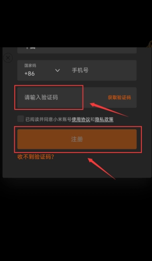 2. 填入手机号码,接着点击“获取验证码”按钮。