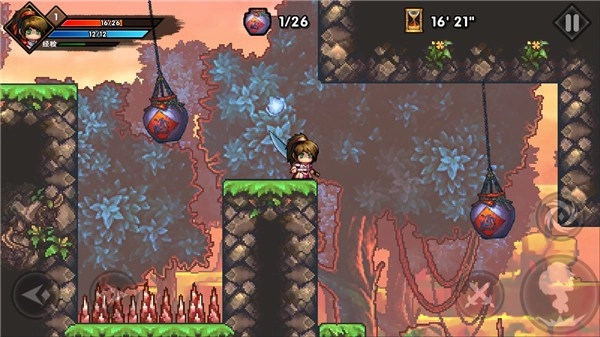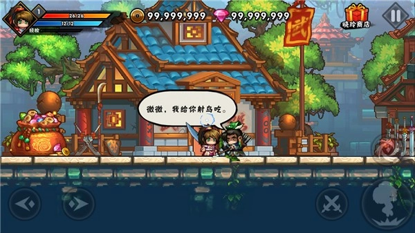 2、位于左下角的左右按键,能够操控角色进行前后移动。右下角则是负责跳跃与发射飞镖的区域。需要留意的是,在进行跳跃操作时,我们控制跳跃点击的时长越久,角色跳跃的高度就会越高。