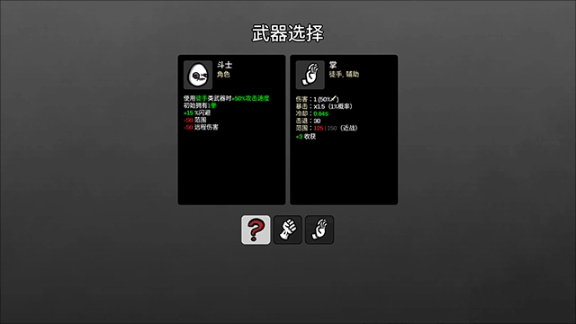 3、在此处选择武器,游戏的初始武器便是在此设定的。