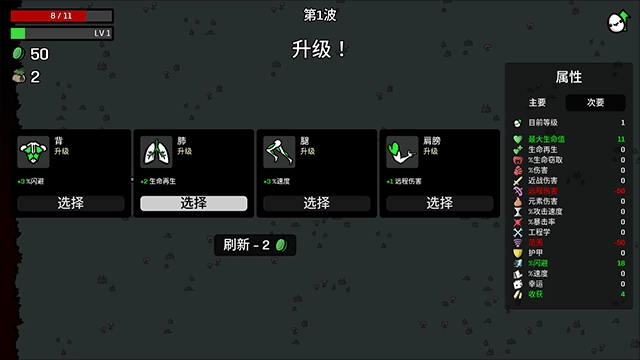 土豆:生命值增加3点,每秒回复生命值提升1点,伤害提升3%,移动速度提升3点,运气值提升5点。
