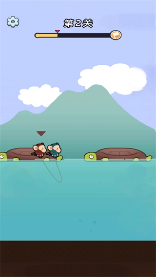 2、使用乌龟道具,待乌龟露头且状态稳定后,操控角色跳至龟背上,借助乌龟的移动抵达对岸。要留意龟背的承重情况,避免两个角色同时掉入水中。