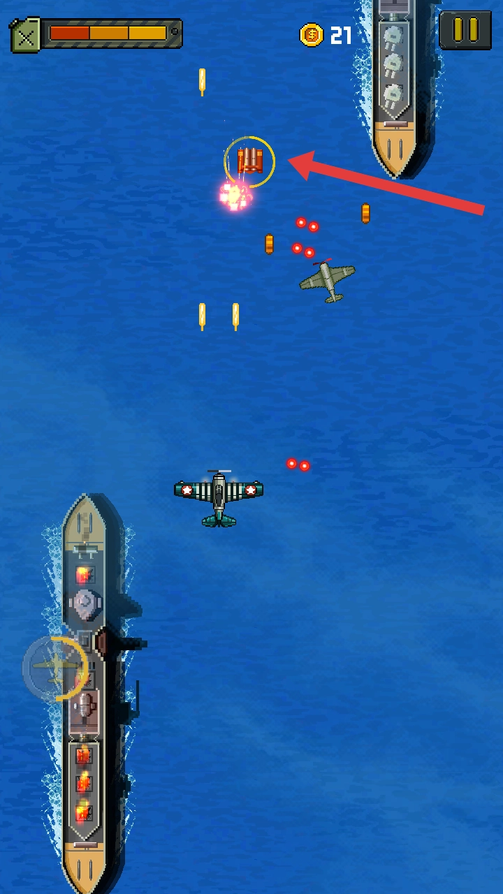 3、在对战机发动攻击的同时,操控战机在空中拾取炸弹道具,以此获得更强的攻击能力,来应对敌方带来的威胁。