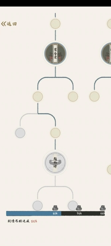 如图所示,每个带有文字的大圆圈均代表一个故事。其中,有颜色的大圆圈表示已经历的故事,灰色的大圆圈代表未经历的故事。若大圆圈呈现灰色且带锁的状态,意味着该故事尚未解锁,需将前面故事的每一个剧情分支都体验过后,再依照正确的走向做出选择,方可解锁。