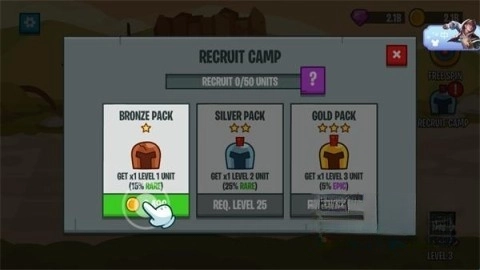 4、随着关卡数量不断增加,敌人的实力会愈发强大,此时你得持续招募新兵,让自己的阵容变得更为壮大。
