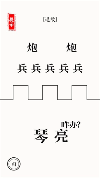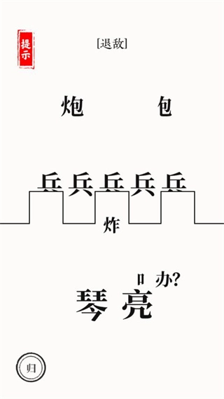 1、第四关【退敌】,第一步点击【亮】字,随后会出现【咋办】。