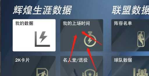 2. 进入菜单,点击“数据”选项,从中找到“我的上场时间”。