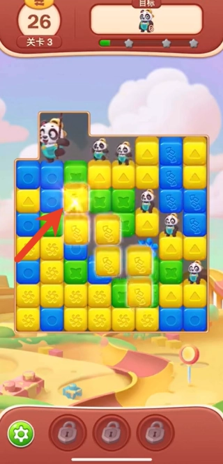 1. 进入游戏,选择关卡后,仔细观察棋盘上不同颜色熊猫方块的分布状况,明确本关具体要达成的目标,例如需消除的熊猫种类或者数量。