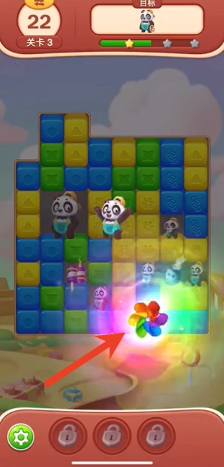 3、恰当运用获取到的技能道具,助力消除那些难以独自清除的方块或熊猫。