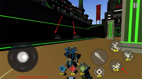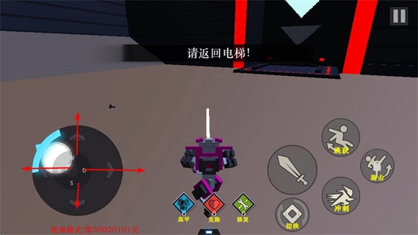 3、遭遇敌方机器人之际,借助跳跃、劈击、冲刺等技能展开战斗,通过灵活操作躲避敌人的攻击,与此同时发起有效进攻。