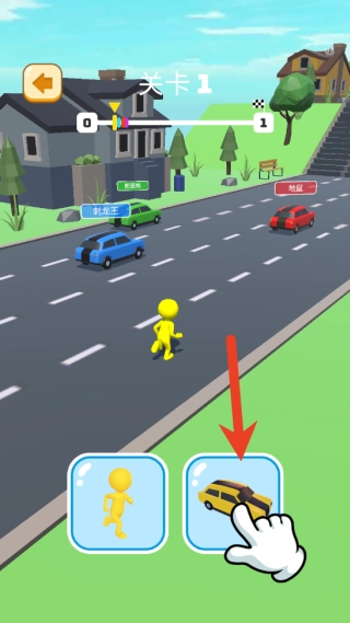 3、在奔跑过程中,若遇到不同地形,需及时做出反应:身处水路区域,点击变身按钮切换为帆船形态;在公路路段,变身赛车加速;遇到楼梯地形,则转换为人的形态。