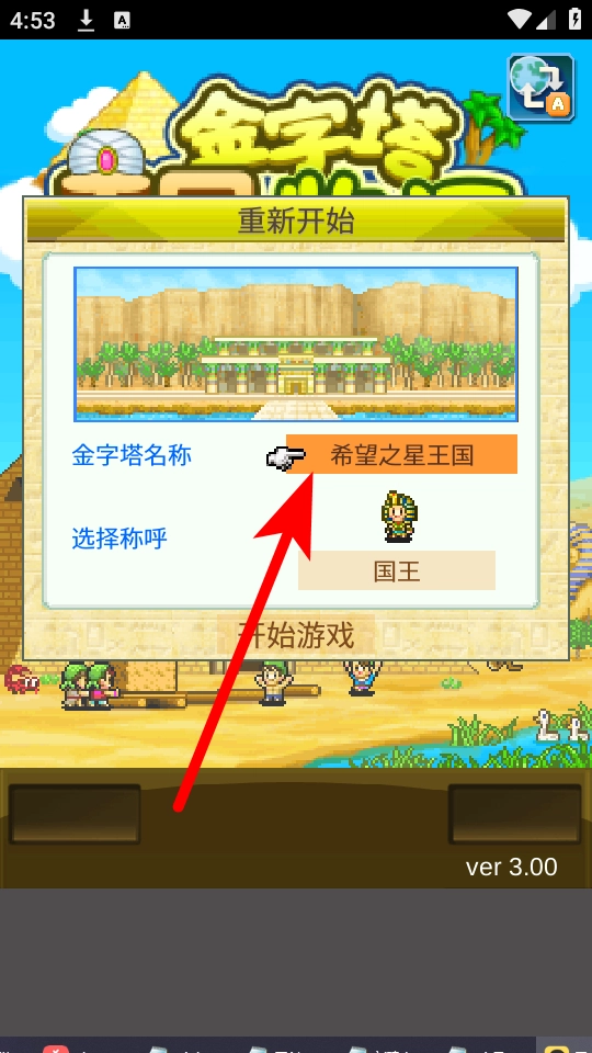 1. 在游戏的初始界面,把“希望之星王国”选作金字塔名称,确认之后,就能开启游戏旅程。