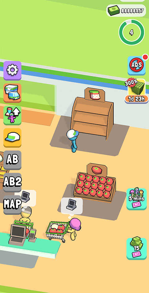 3、通过解锁实现更多新品的购买,以此吸引更多新顾客前来超市消费,进而打造一个强大的商业帝国。