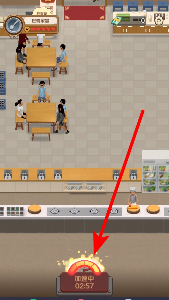 2、店铺开业后,会迎来顾客到店就餐。此时,若使用加速功能,可缩短菜品制作等流程所需时间,提高经营效率,促使店铺运营更加顺畅。