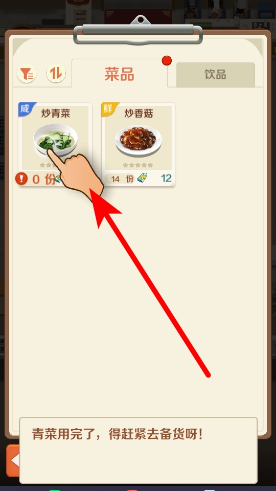 3、在经营过程中,菜品的原材料会不断消耗。以炒青菜为例,若青菜用完了,就必须及时备货,从而确保能正常为顾客供应菜品。