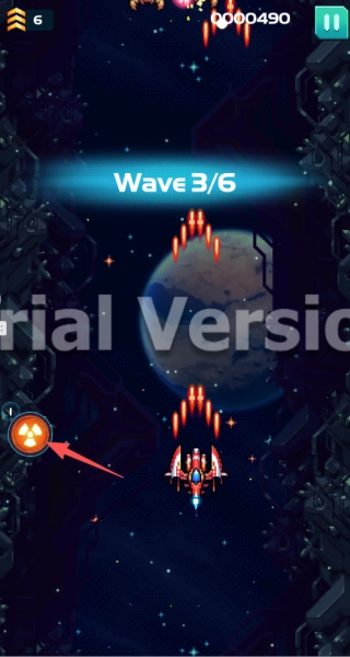 4、留意左侧的技能图标,当有一波敌人密集现身时,迅速释放技能,便能大范围消灭敌机。