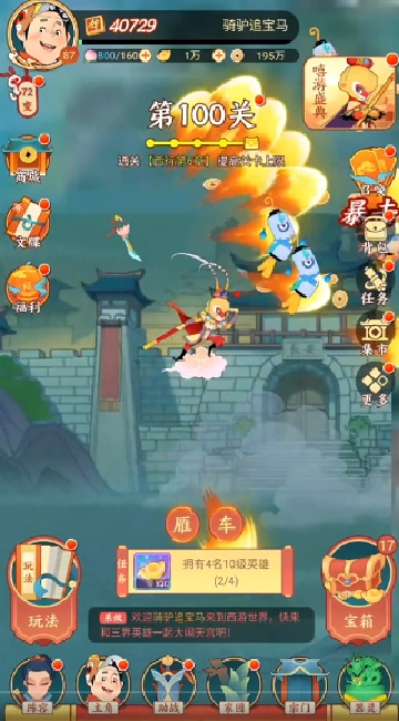 闹闹嘻游是一款基于中国古典名著《西游记》打造的放置挂机与卡牌收集类型游戏。它以“吴小恩穿越到西游世界,助力唐僧师徒踏上取经之路”为主线剧情,巧妙融合放置挂机、卡牌策略以及角色养成等多种玩法。其目的在于以轻松便捷的形式,再现西游经典情节,从而弘扬中国传统文化。