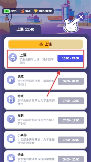 4、将上课时间设定在【10:00】至【13:00】这个区间,以此促使学生按时上课,降低退学风险,稳固生源。