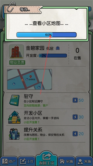 2. 等待尝试进入小区,在此过程中,查看小区地图等相关内容的进度条,待其加载完毕,进而逐步熟悉小区信息。