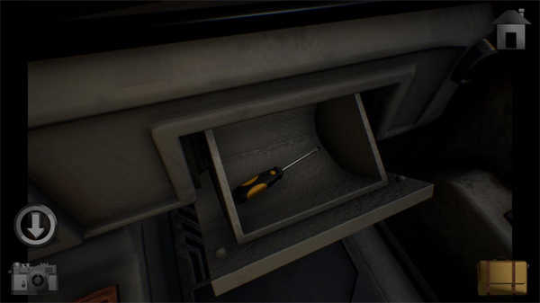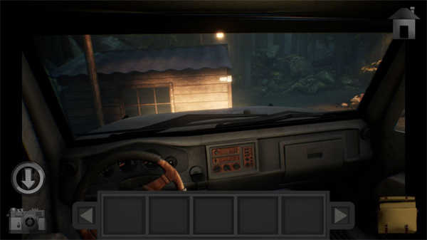 2、出门后发现保险丝盒损坏,而且因其位置过高,手无法够到。于是折返至左侧路径,朝着海滩方向走去,登上船后找到了车钥匙,打开车灯,让灯光照亮前方的小屋。