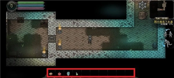 2、物品栏位于下方,可放置食物与武器,不同食物能恢复体力。