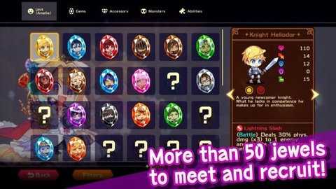 把散落在地牢里的宝石(单位)收集起来,拉上同伙。将相同的宝石集结在一起,就能发挥出更强大的力量!要是某个单位的“颜色”或者“符号”与队伍中其他某个单位一样,就能够发动该单位的“印记能力” 。