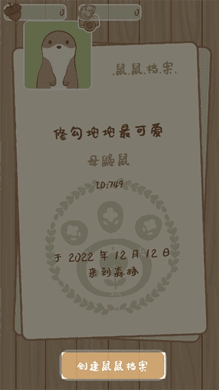 5、进入档案室后,就能创建鼠鼠档案,还能填写属于自己的标签。点击右上角头像,还可以更换成自己心仪的头像。