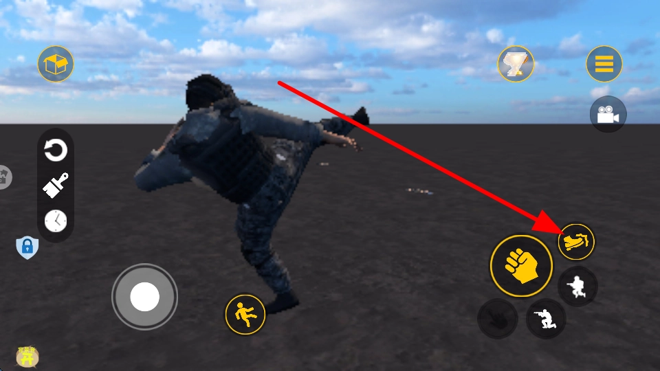 4、在近距离战斗场景中,点击踢腿按钮,即可对靠近的目标造成伤害,充分发挥近距离作战的优势。