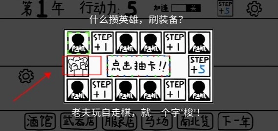 5、接着前往酒馆刷取武将,所需武将包括:一开始抽到的「小爆哥」,以及从酒馆刷出的刘备、关羽、张飞。要获取桃园三结义的增益效果(BUFF),还有刘备不消耗行动力刷武将的增益效果(BUFF)。剩下的两个武将,放在开始4 - 9的位置就行(吕布是唯一处于5 - 9位置的武将)。