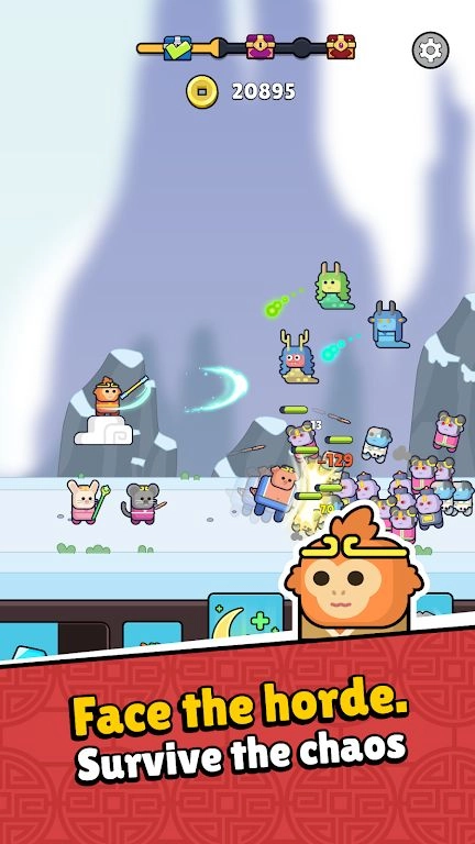 5. 在这款充满趣味的神话策略射击游戏里,你将化身为孙悟空,作为唯一的幸存者,召集各路英雄,奋力击退如潮水般涌来的成群敌人。