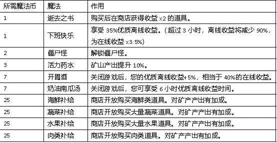 (2)花费7个魔法币,可购买以下物品:逝去之书、下班快乐、僵尸怪、活力药水