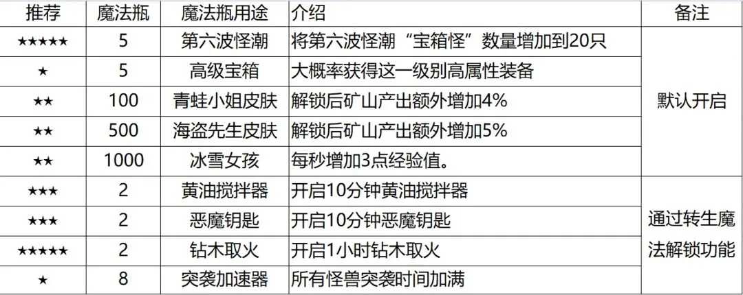 (2)突袭加速器:具备出色的效果,能够即刻启动全部突袭怪兽。然而,其消耗魔法瓶的速度极快,使用时需谨慎。