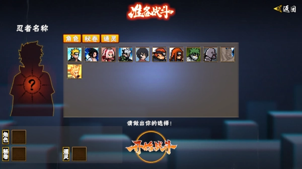 依次选择角色、秘卷、通灵,开始战斗;