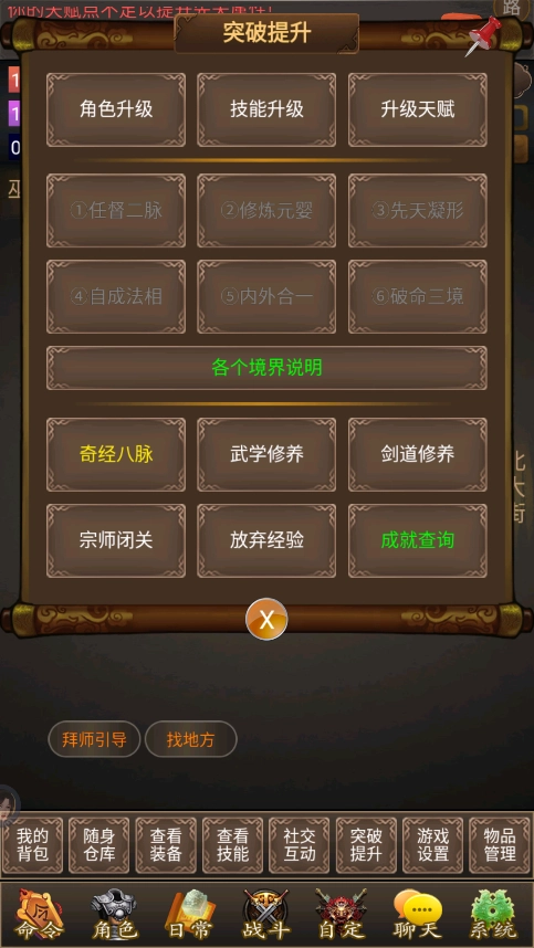 若想了解武当派完整的拜师步骤,可通过快捷键唤起拜师指引界面。需要注意的是,若自身正气值不足,可借助正气丹来补充;道学心法的提升则可通过阅读相关典籍实现。此外,潜能的功能与技能点相近,不过除了心法和基础技能外,多数技能都能通过练习来提升,无需耗费潜能。